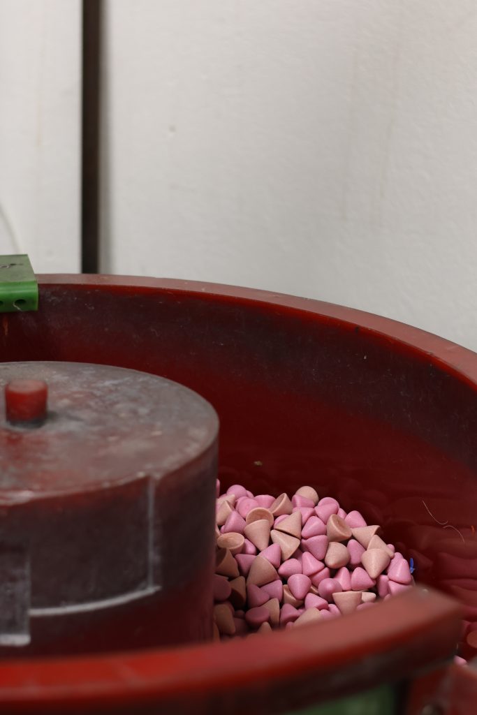 Konvensjonelle maskiner Jakobsen 600×200 Plansliper – for sliping av plane flater. Manuell dreiebenk – for reparasjonsarbeid. SIC Merkemaskin – for merking/skriving/gravering på metalldeler. Kromas VM100ED Vibrasjonsgrader – for sliping av kanter på deler.